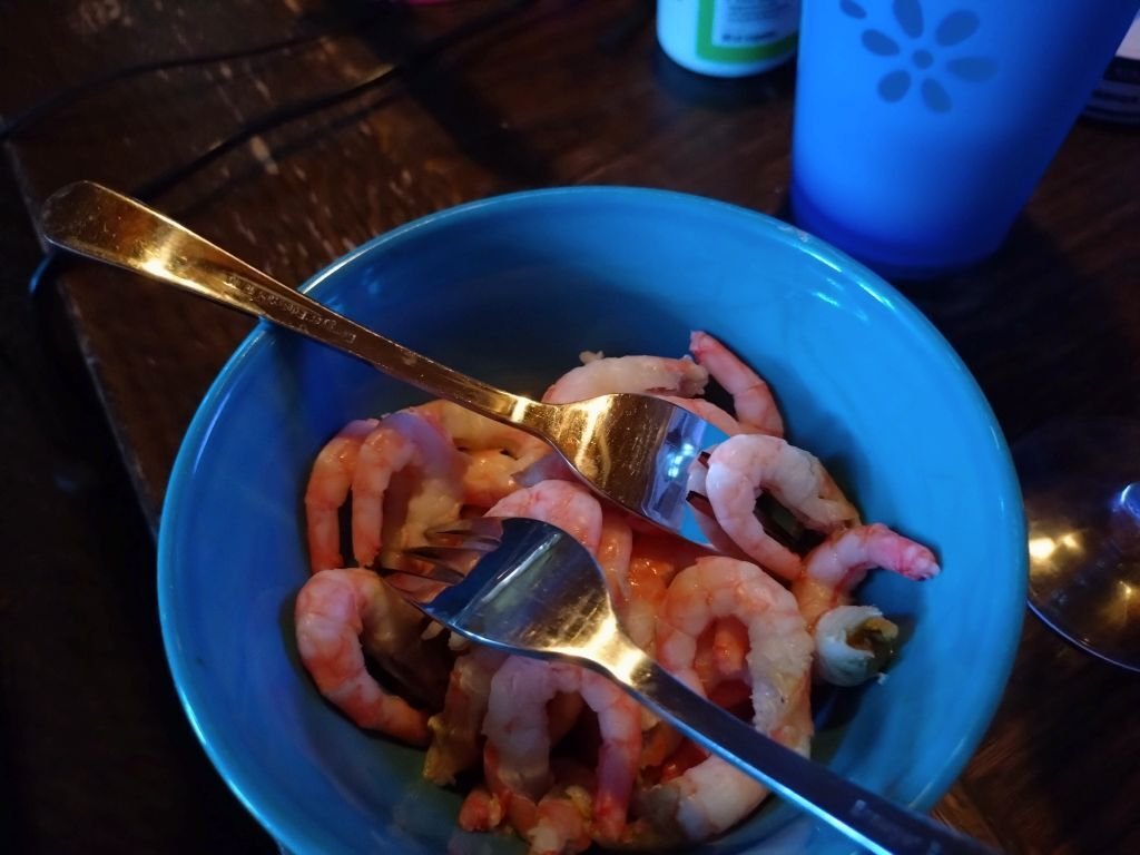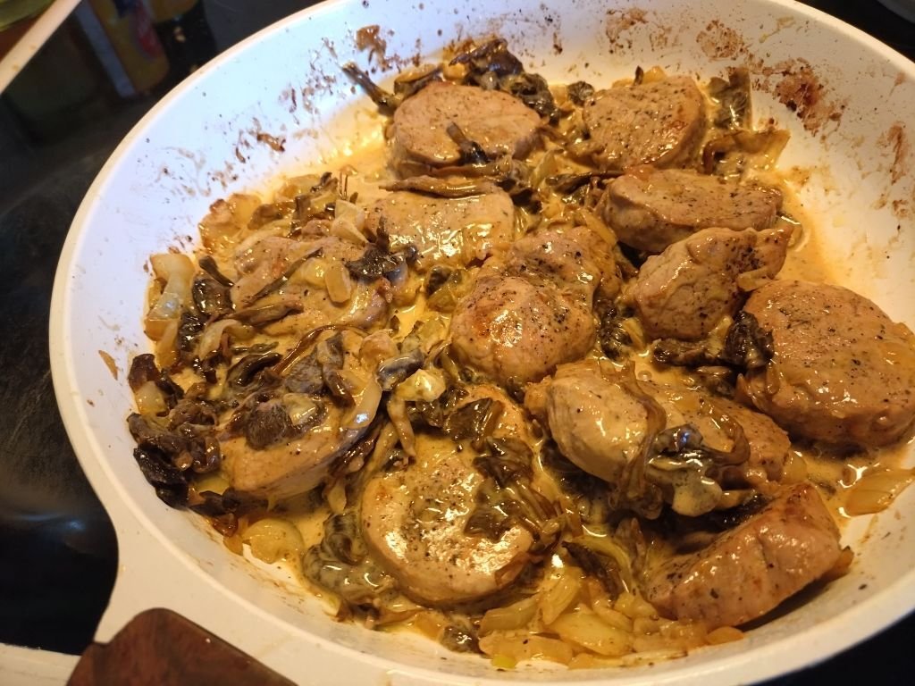 Igår blev det en tvårätters, först färskpillade räkor... Och så bjöds det på fläskfilé med trattkantarellstuvning och kokt färskpotatis... fantastiskt gott! 💕