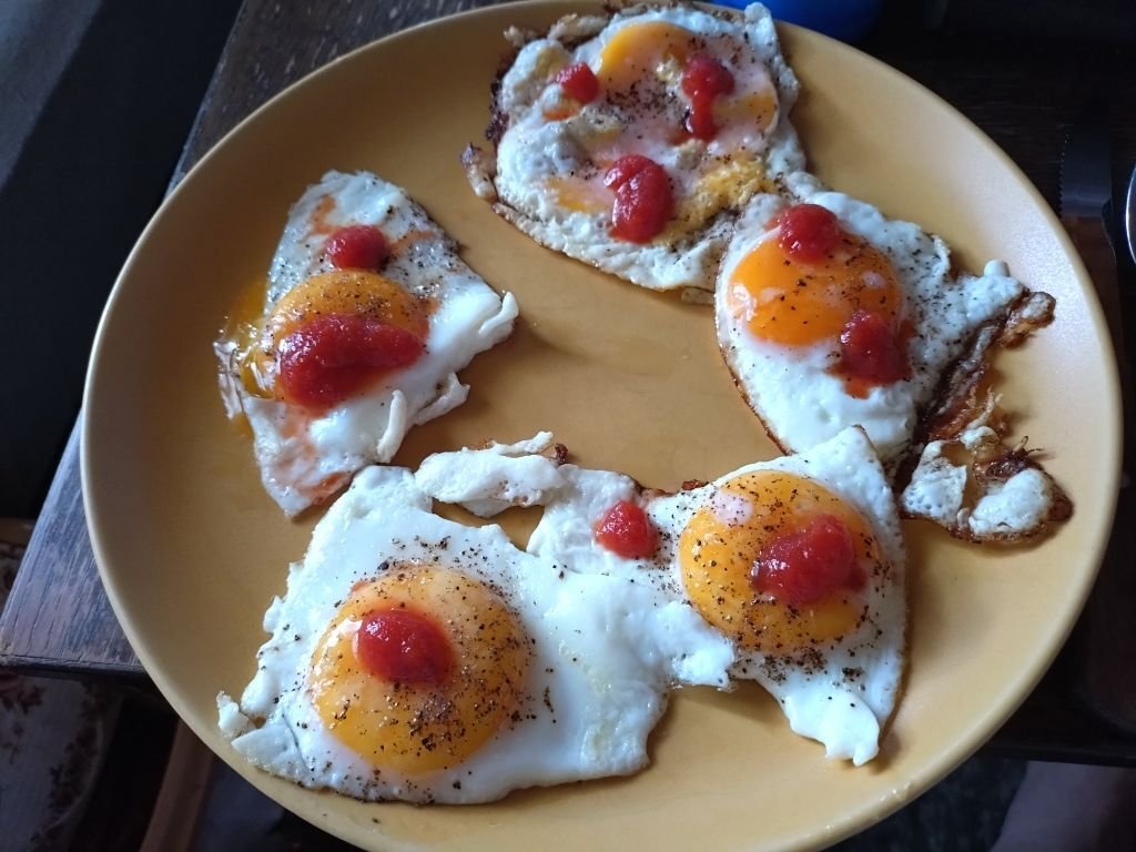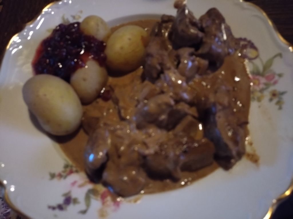 Igår blev det pytt med det som hör till.. Till frukost idag serverades stekta ägg... Och till middag blev det gräddstuvad kycklinglever... fantastiskt gott!