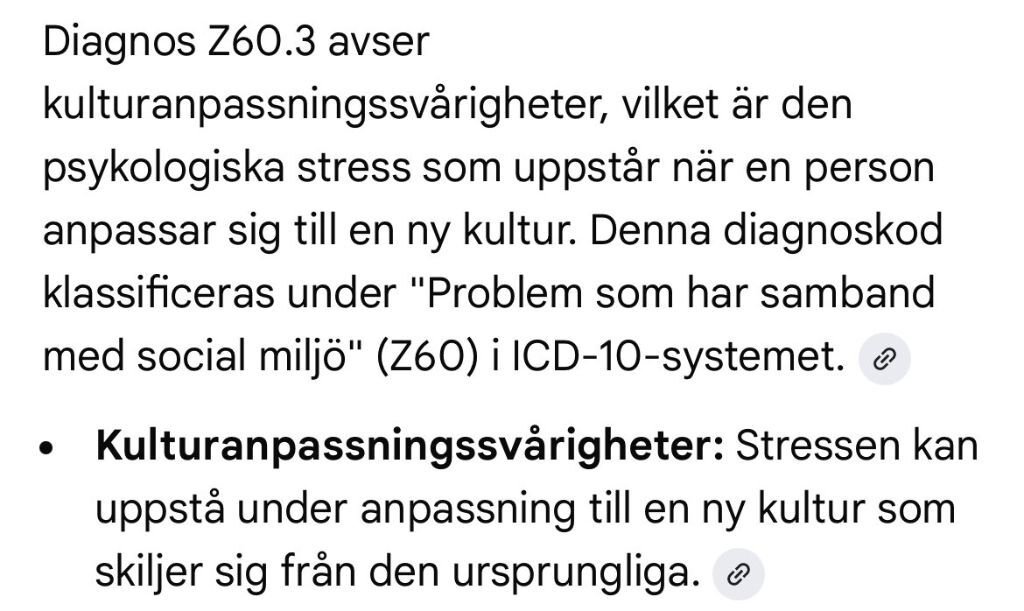 Nja, inte bara i Sverige. ICD koder är ju ett sätt att systematiskt klassificera skador, sjukdomar, symptomer osv och härrör från WHO. Dock är beskrivningen av Z60.3 korrekt och den kan ju definitivt ses som komisk (liksom övriga delkoder under Z60)