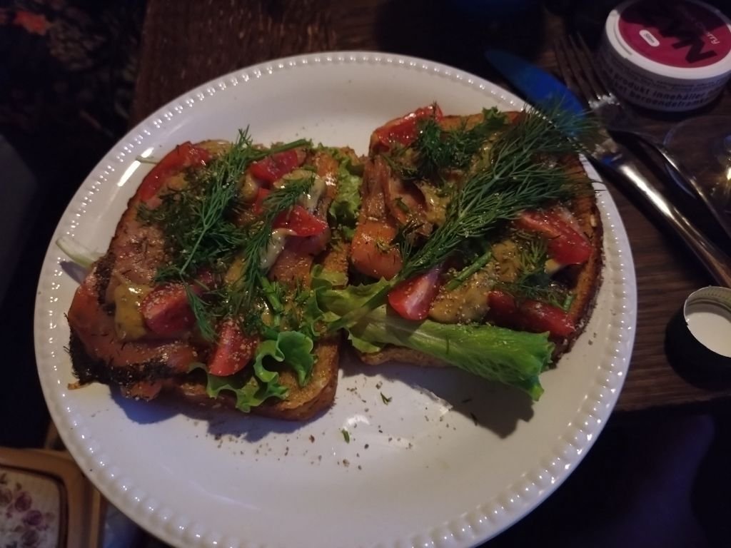 Det fanns en överbliven slatt i en box glögg sedan december, luktade och smakade helt okej så den njöts med pepparkakor och ädelost... 😋 Som söndagsmys blev det rostad fullkornsfralla med plocksallad, gravad lax, hovmästarsås, dill, små fina tomater och vitpeppar från kvarnen.. fantastiskt gott tillsammans med ett glas vitt från Italien... underbart! 💕