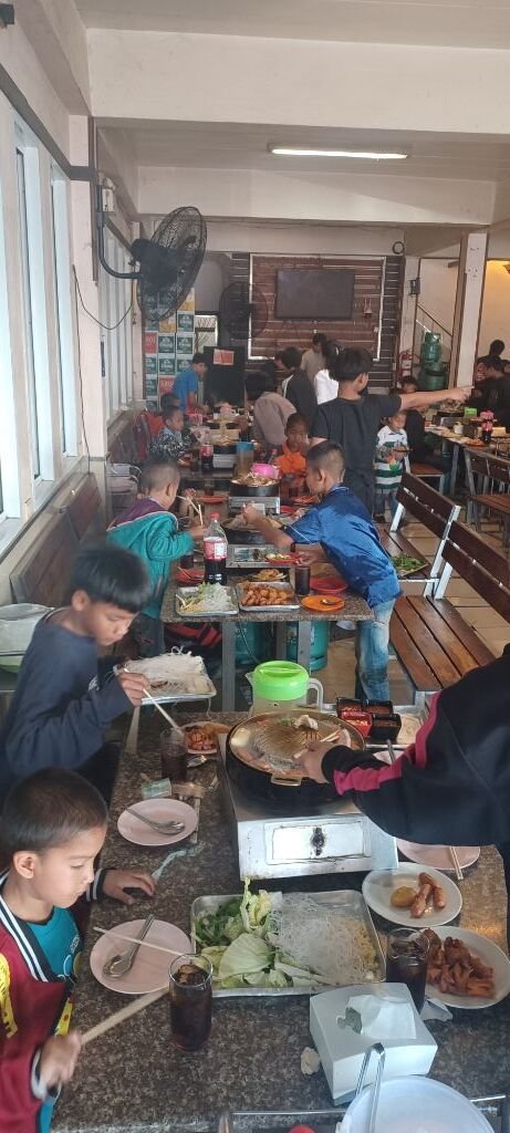 På barnens dag lördag 10 januari delades det ut matlådor på flickhemmet vilket personalen bett oss om. Totalt pris 12.200 baht (3.600 kr). Nya föreståndarinnan sa att hon återkommer när de behöver mer stöd. Grabbarna på pojkhemmet fick även iår besöka, äta Korean Barbeque på restaurang vid Mekong i Nong Khai. Lite rörande var när de ställde upp på led framför restaurangen, två av de minsta sjuåringarna kom spontant fram och kramade mig. Nim sa att de kände igen oss sedan tidigare från flickhemmet där de ju bott fram till sex års ålder. Därefter satte sig 116 grabbar och 29 personal till bords. Det var härligt att se när de gick till angrepp på de välfyllda kantinerna. Råvaror fylldes på hela tiden, alla kunde äta så mycket de orkade. Fyra nyinköpta stereoanläggningar överlämnades till respektive husföreståndare. Maten kostade 24.875 baht(7.425 kr). Vi har även sponsrat med en PartyBox som används till musik vid gruppövningar mm. Fortsättning följer.... Stort Tack till alla Givare vilka gör det här möjligt för sextonde året I rad. Vi har totat skänkt närapå 3 miljoner baht.36 poäng