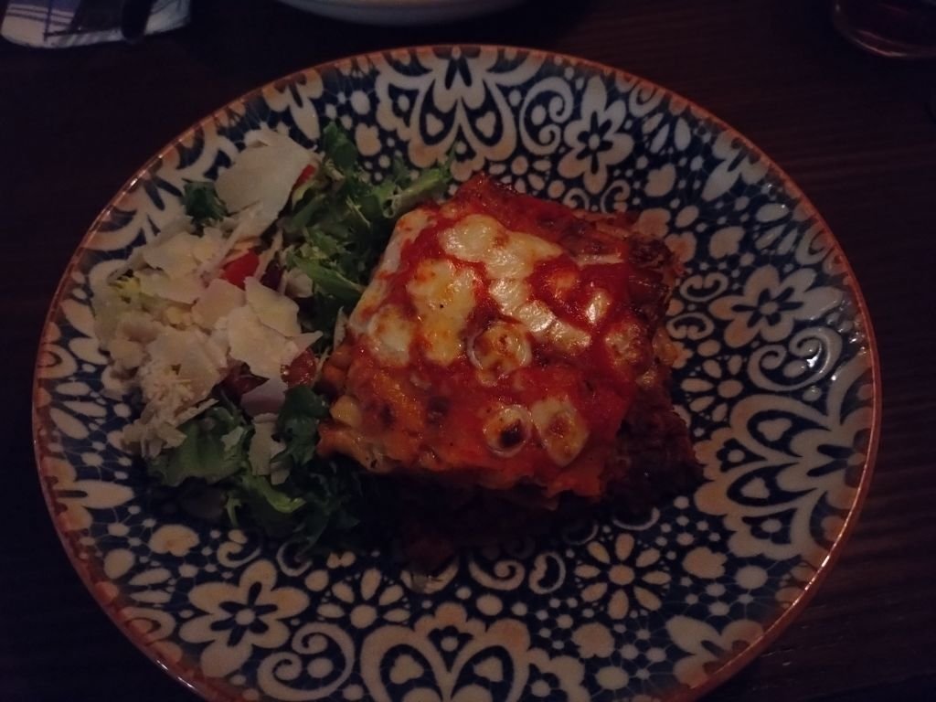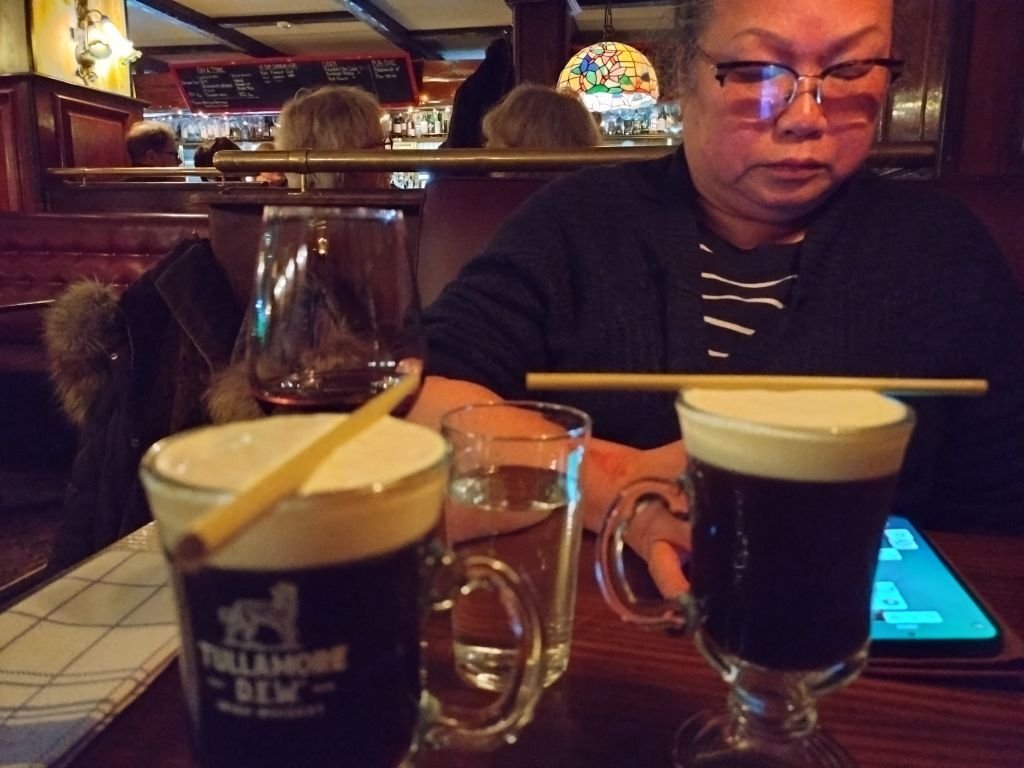 Frugan kom tillbaka från Hlndersmässan och fick in ett gott glas rött vin från Italien.. Åsså botaniserade vi i deras meny och frugan kom fram till att hon skulle slå till på deras högrevschilli som för övrigt var kanongod! 💕 Och till mig blev det Carros lasagne å det var första gången i livet som jag åt lasagne på restaurang som inte behövde lite tabasco uppepå...å det är ett bra betyg! 😋 Vi avslutade kvällen med med varsin Irish coffee å sen var det dags att åka hem till jämmer och elände igen... Fast det blev inte elände direkt.. en överbliven belgisk julöl och en spansk äpple cider som inte var i min smak fick bli tack och godnatt, Natti natti sov gott! 🥱 ❤️❤️❤️14 poäng