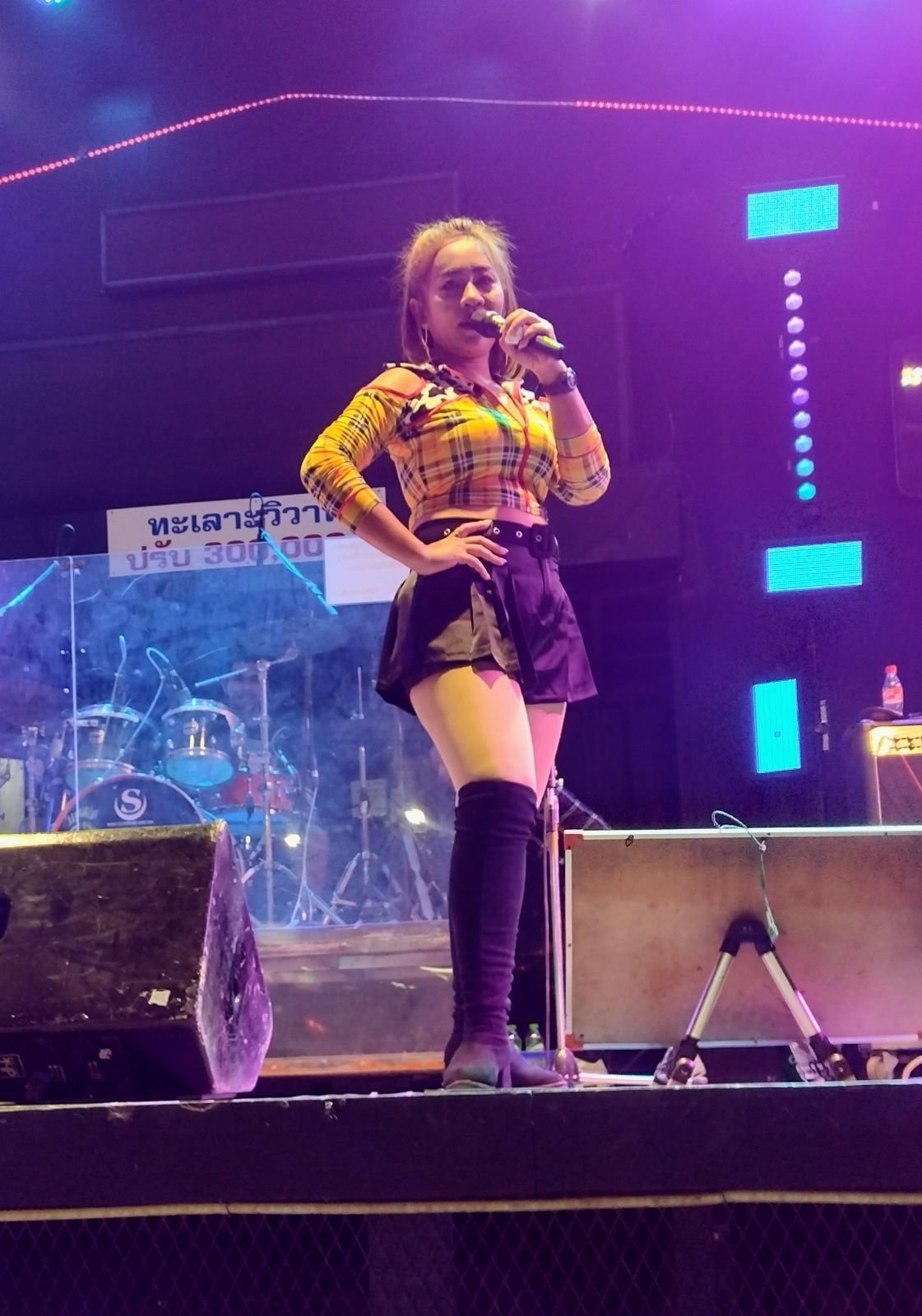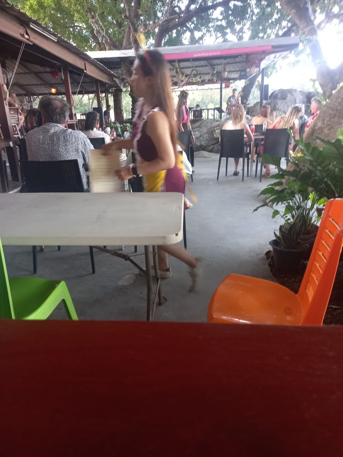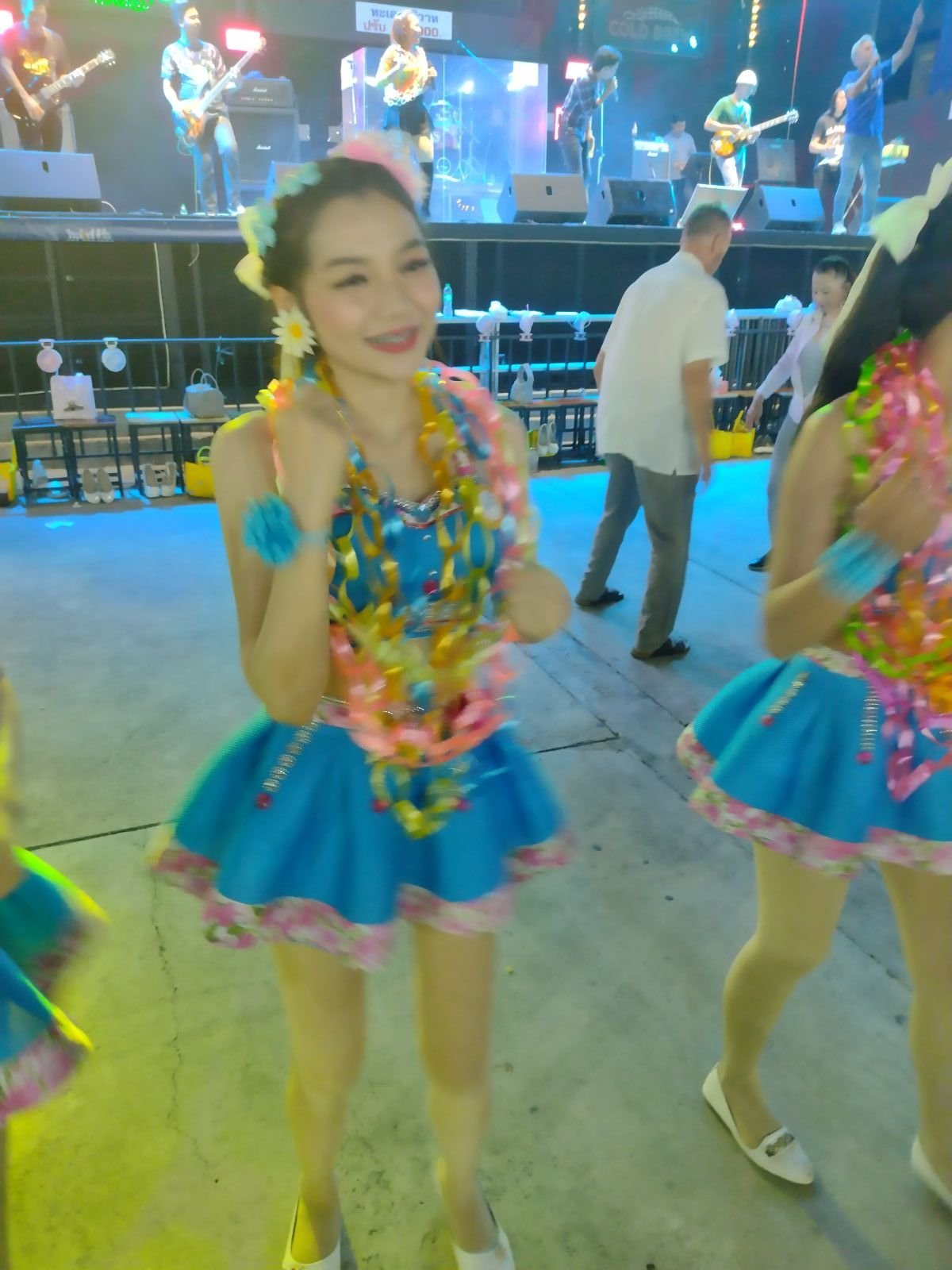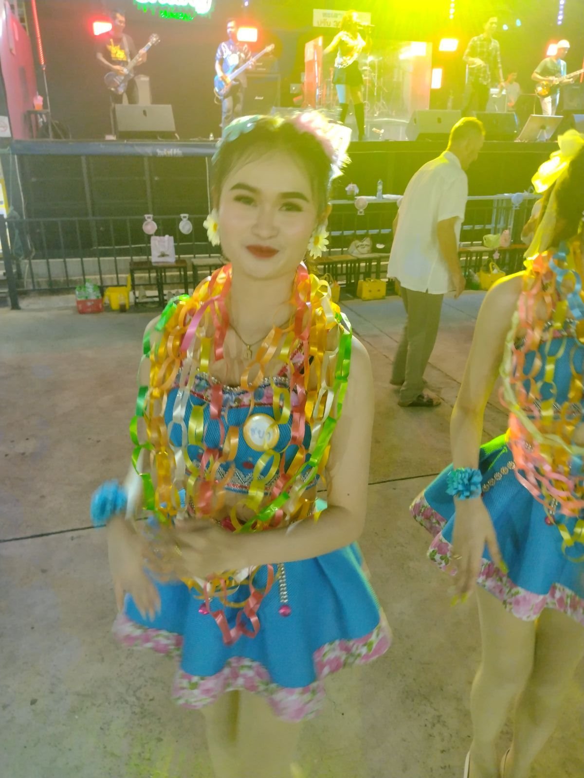 När det var dags för dem att uppträda igen så gick jag bort till tjejen som sålde girlanger och jag bad om att få köpa en girlang till var och en av tjejerna som dansade och även en girlang till tjejen som sjöng.