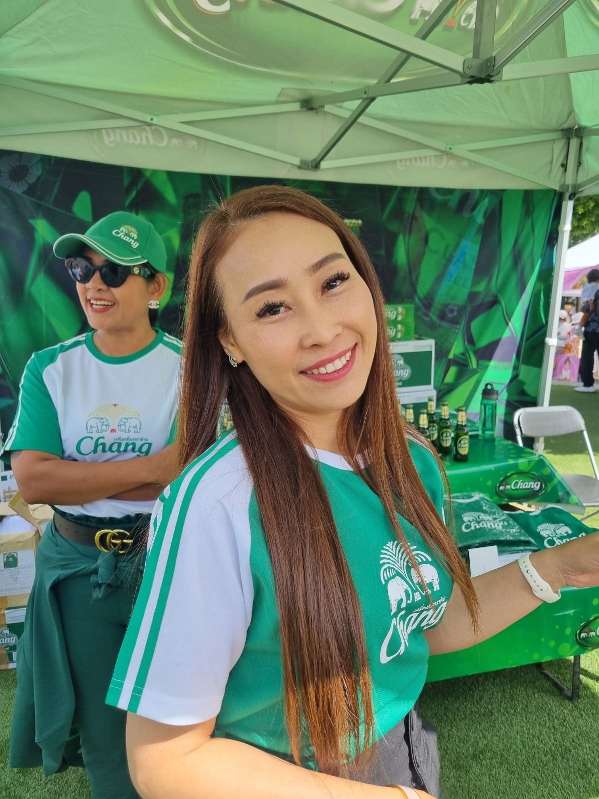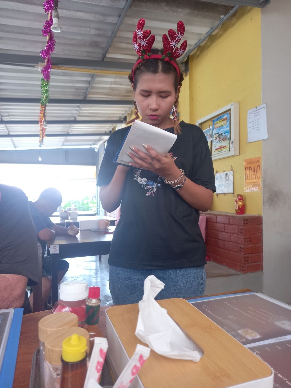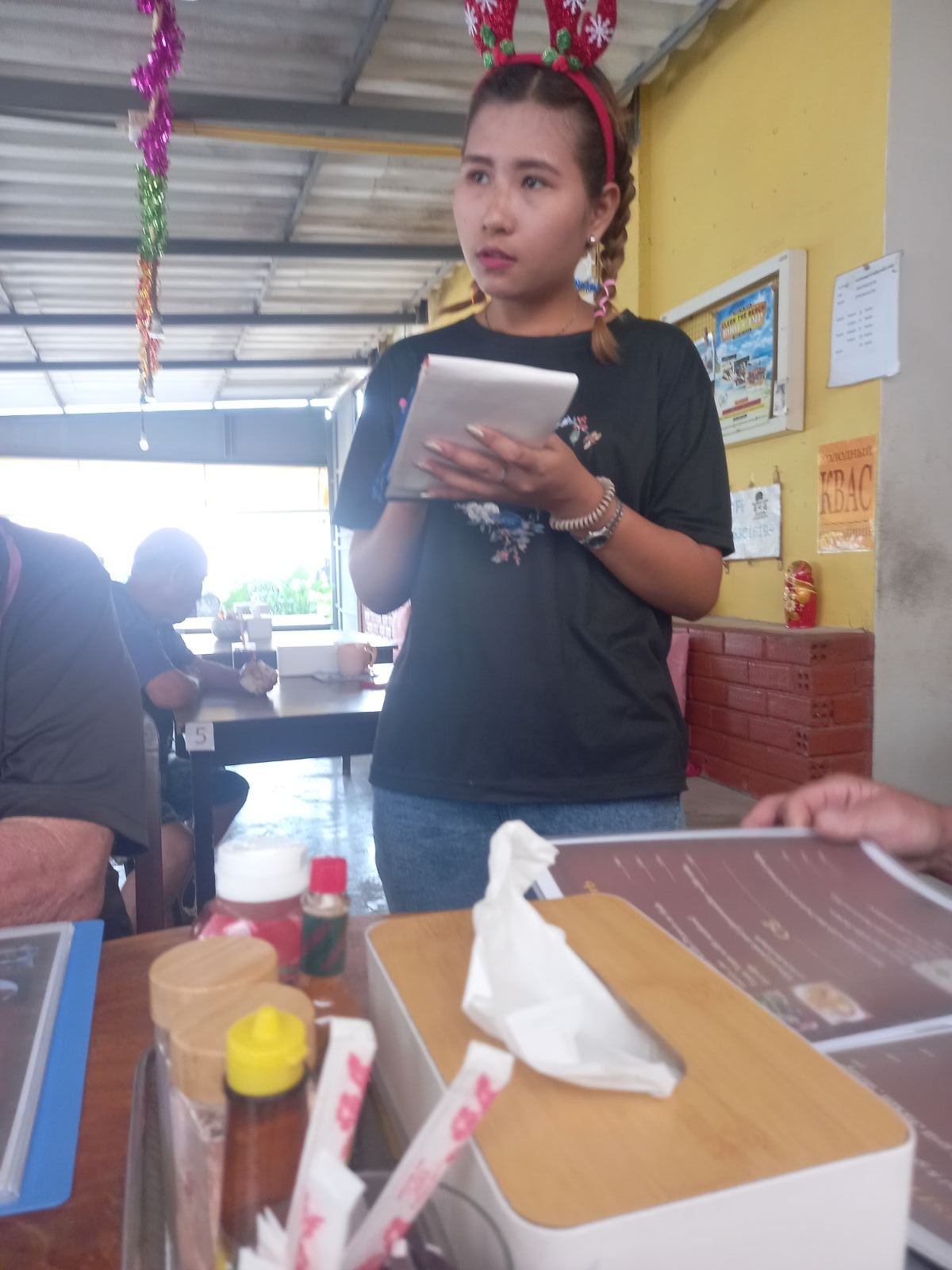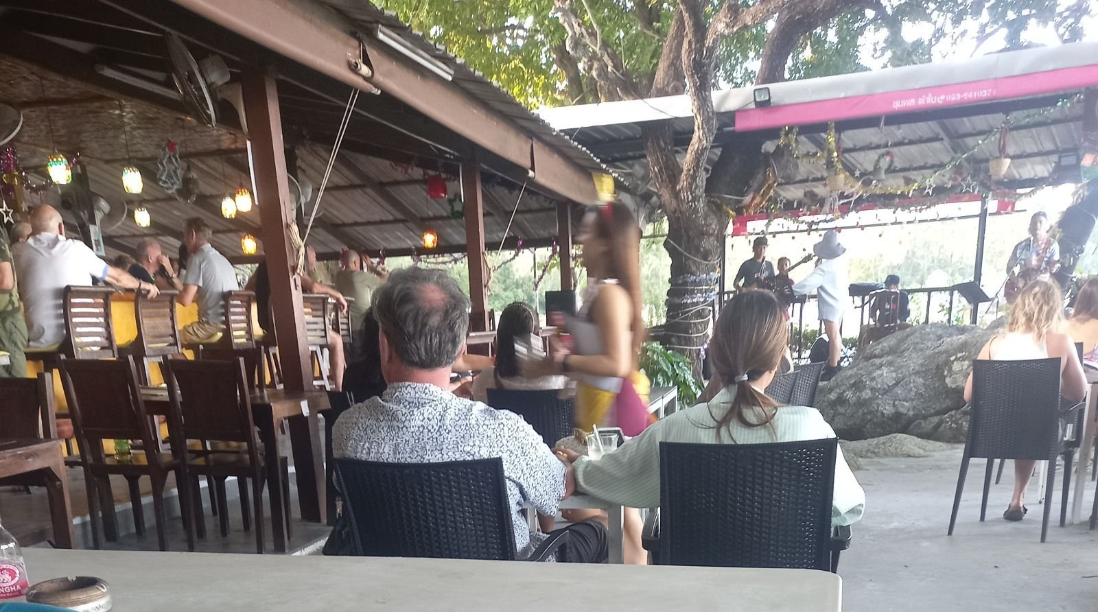 När det var dags för dem att uppträda igen så gick jag bort till tjejen som sålde girlanger och jag bad om att få köpa en girlang till var och en av tjejerna som dansade och även en girlang till tjejen som sjöng.