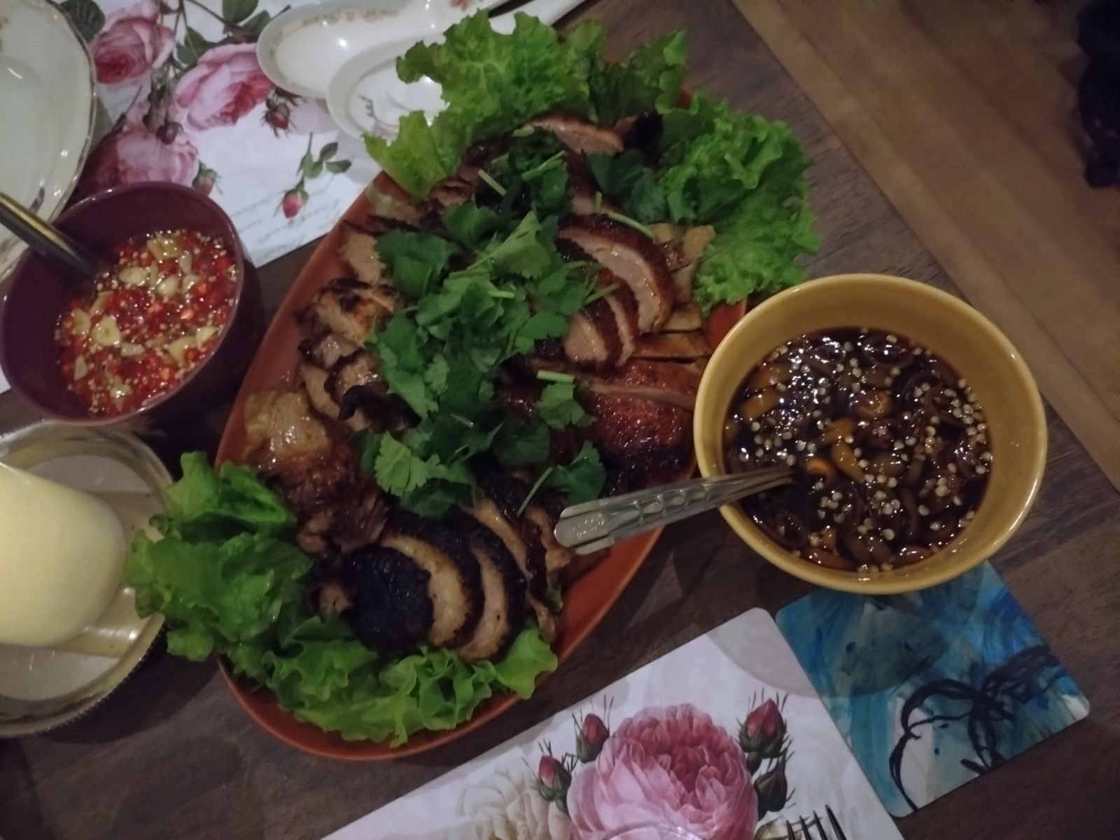 Detta inlägg gillas... ellim63 Inlagd December 26, 2023 Detta inlägg gillas... Dela Inlagd December 26, 2023 Igår kom favoritdottern med pojkvän på besök och frugan bestämde att det skulle serveras thaimat.. Ped yang, grillad anka och en sojasås. Plaa neung manao, fisk i ugn med chili, vitlök och lime.. Tom kha gai, en kycklingsoppa med kokosmjölk, chili, koriander, salladslök, tomat och lime.. Och till sist pamuk yasai, bläckfisk fylld med fläskfärs kryddad med vitlök, korianderrot och vitpeppar... Allt var fantastiskt gott och en trevlig juldagskväll blev det! 💕🙏💕 15 Link to comment Dela på andra sajter More sharing options...