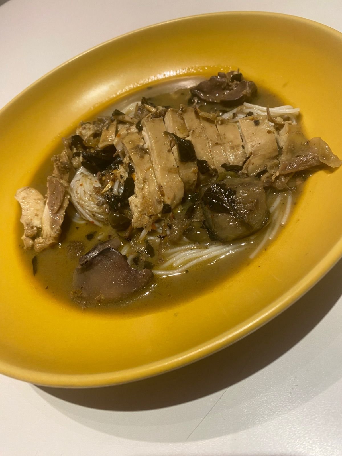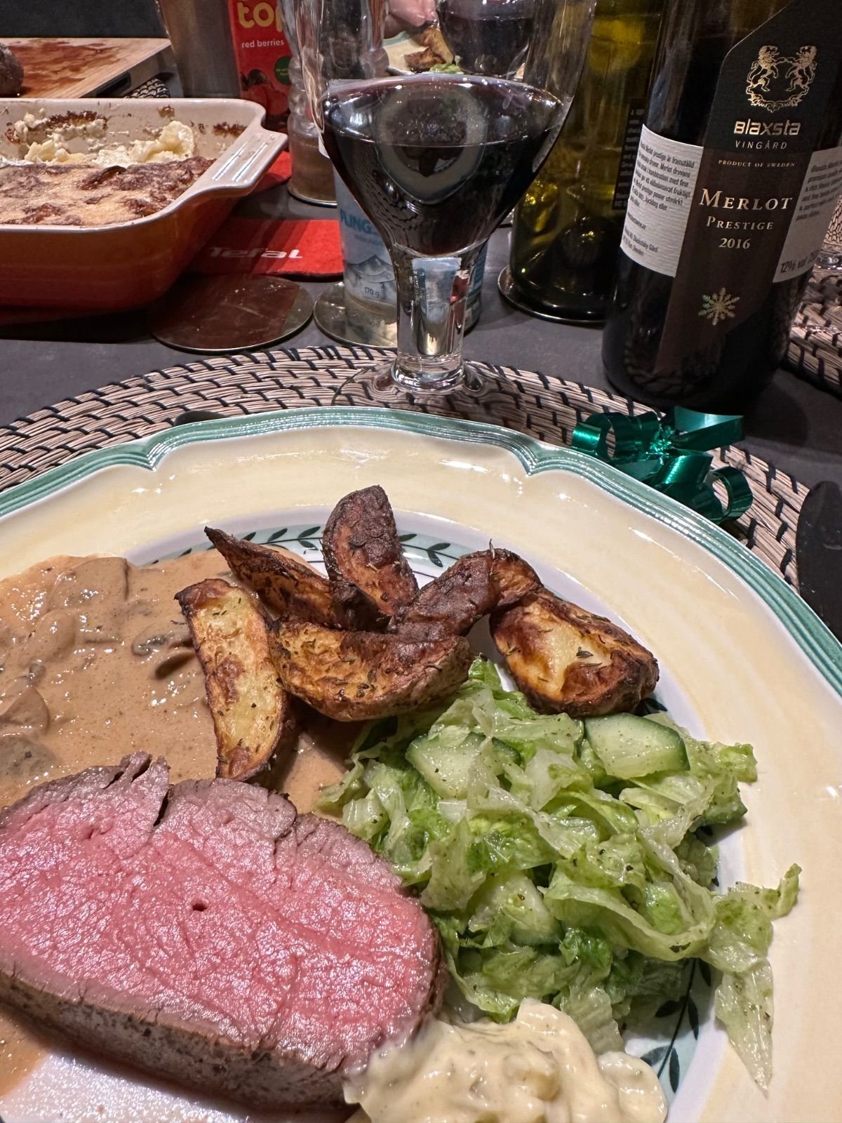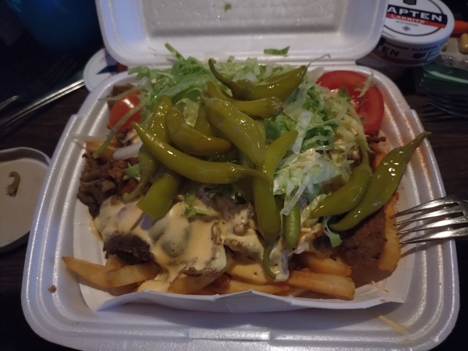 Inte vad jag åt utan jag åt på ny lokal krog. Bra mat och billigt, men matbilder är inget för mig idag så jag tog denna på fina handgjorda reklam skylten ??