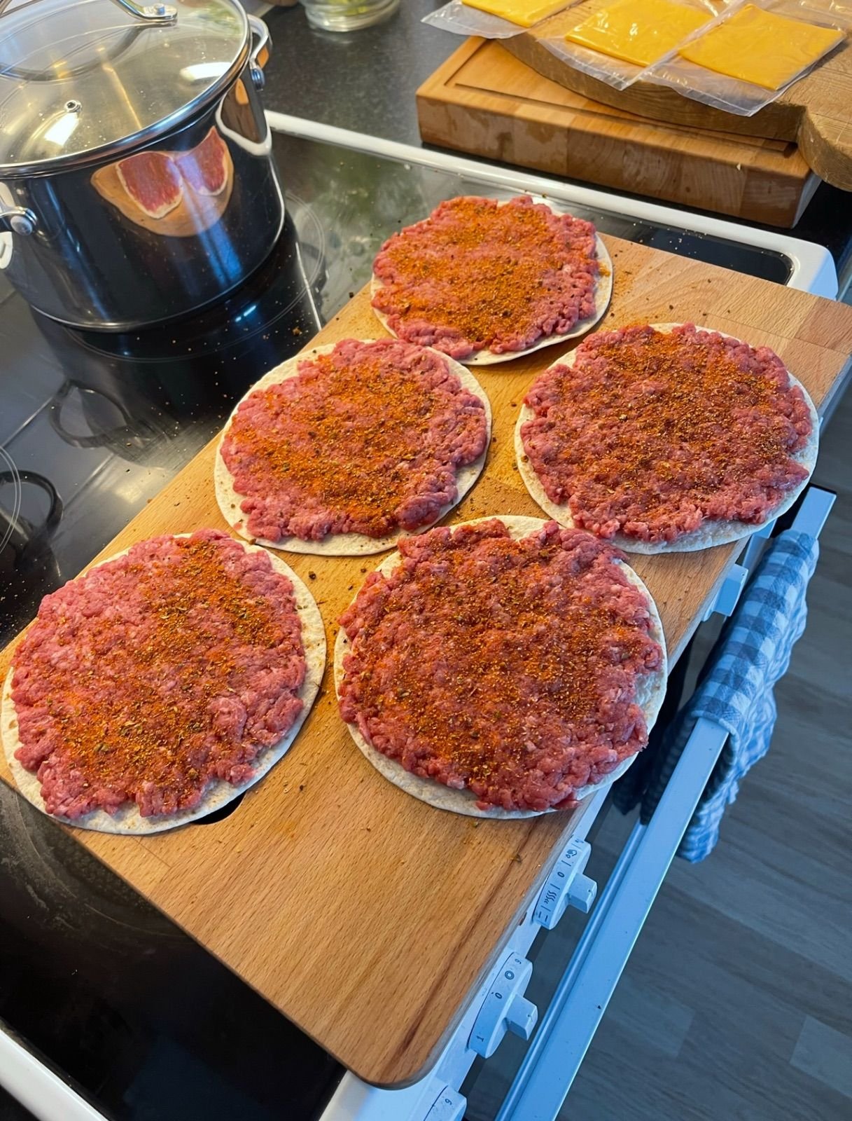 wavis Inlagd Februari 20, 2024 Dela Inlagd Februari 20, 2024 17 minuter sedan, skrev Dalton: Smashed taco burger! Ta ett tortilla bröd och pressa ut lagom med färs på det Körde det på stekbordet på grillen, först med ”köttsidan” ner, sen vända på den, slänga på cheddar ost När dom är klara slängde jag på sallad, lök, gurka, hamburger dressing osv…. Sen viker du den som en taco och äter! Satt som en käftsmäll! Den ska testas .. Link to comment Dela på andra sajter More sharing options...