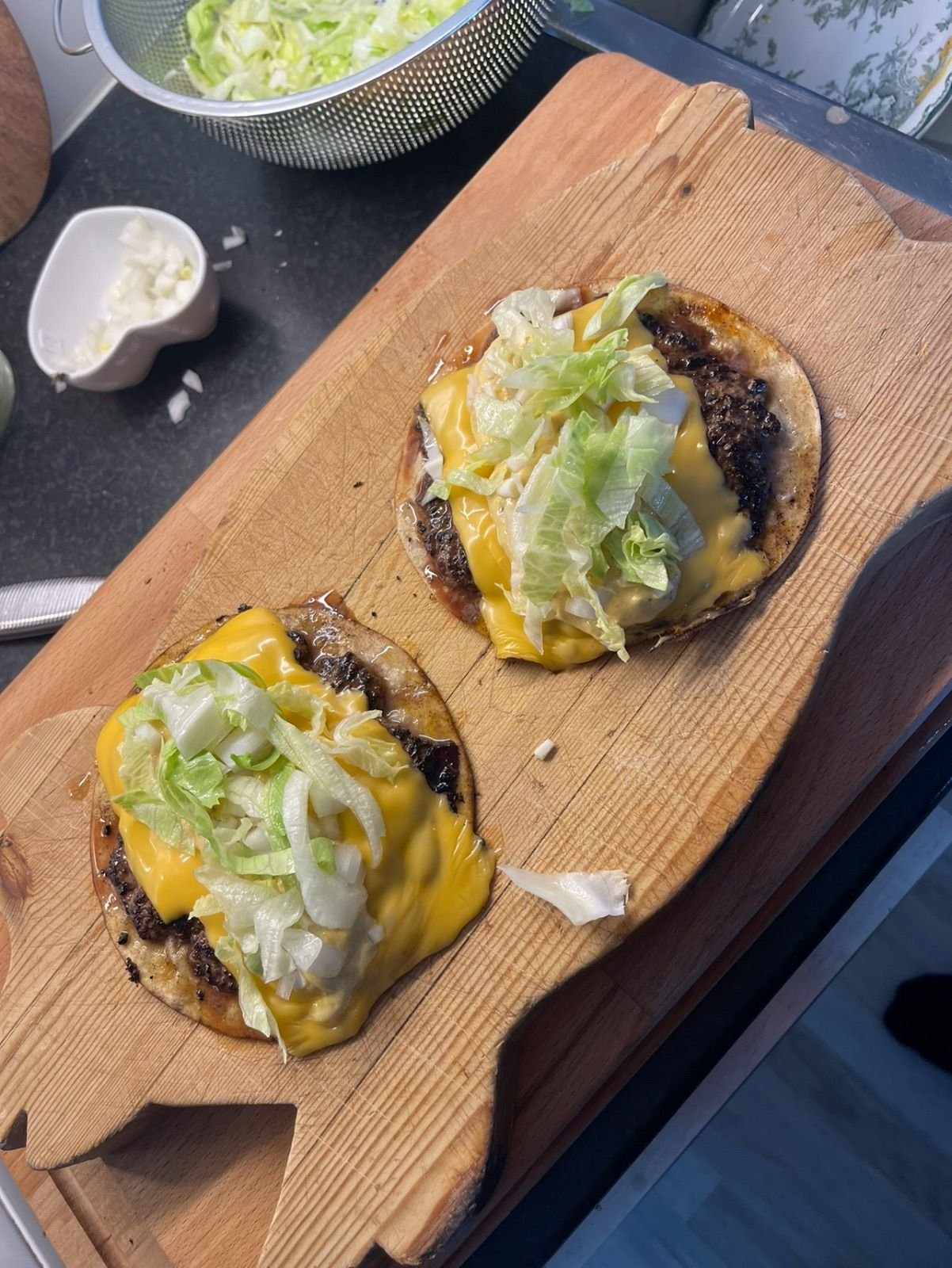 Detta inlägg gillas... Dalton Inlagd Februari 20, 2024 Detta inlägg gillas... Dela Inlagd Februari 20, 2024 Smashed taco burger! Ta ett tortilla bröd och pressa ut lagom med färs på det Körde det på stekbordet på grillen, först med ”köttsidan” ner, sen vända på den, slänga på cheddar ost När dom är klara slängde jag på sallad, lök, gurka, hamburger dressing osv…. Sen viker du den som en taco och äter! Satt som en käftsmäll! 21 Link to comment Dela på andra sajter More sharing options...