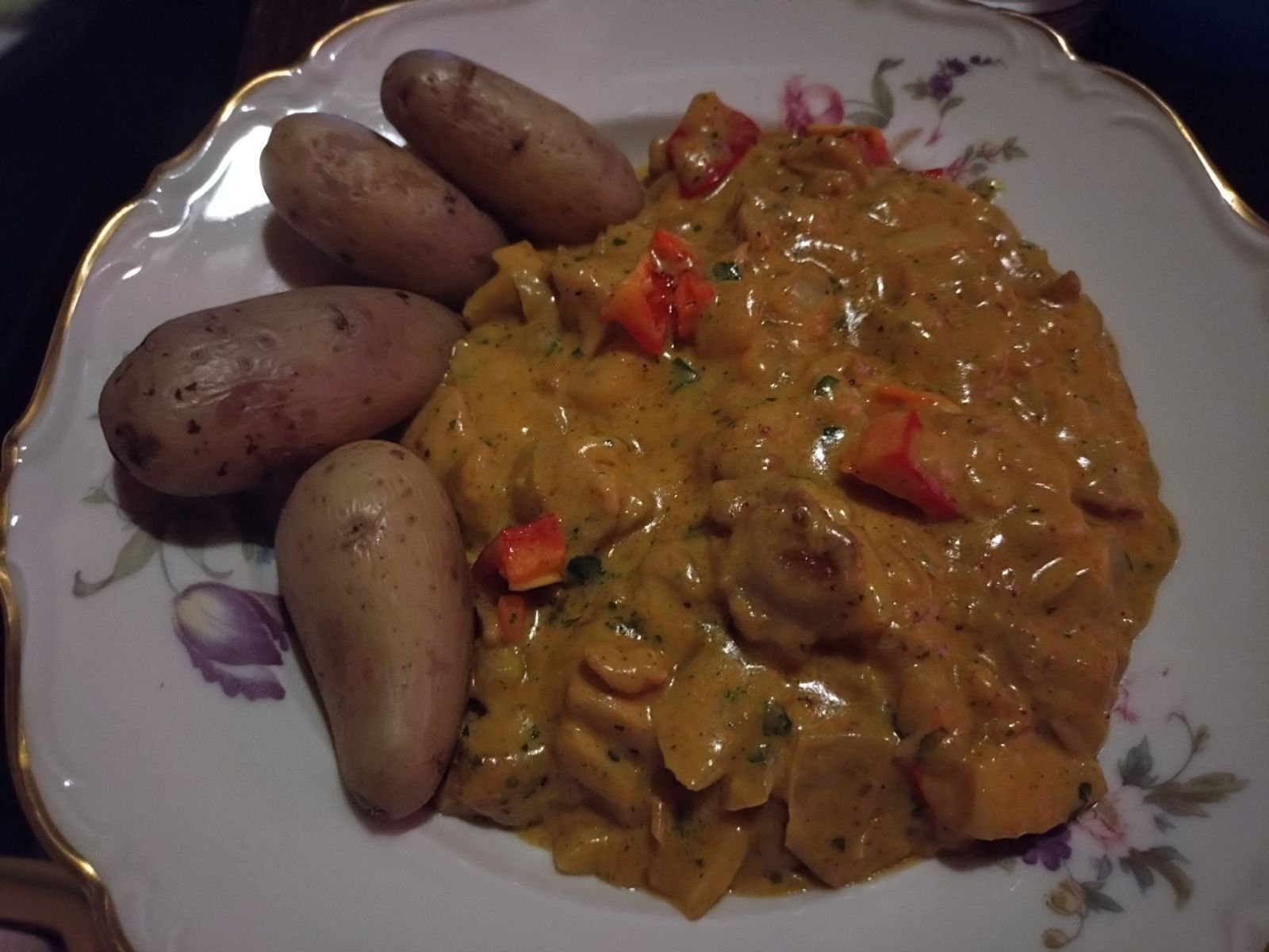 Sisådär, kyckling med curry som pyntades med röd paprika och persilja... fantastiskt gott 😋