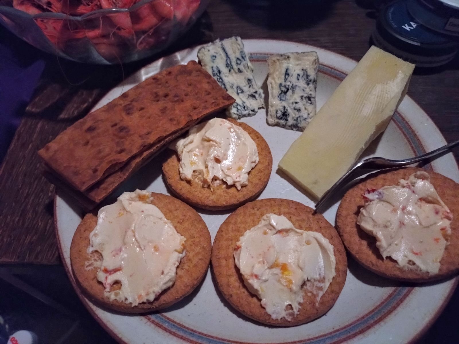 Och till mig blev det digestive med smaksatt färskost, två snuttar Castello, surdegskex från Knivsta och en helt underbar ost från det där svårstavade landet mitt i Europa med höga berg... fantastiskt gott, Tack för att vi finns! 💕