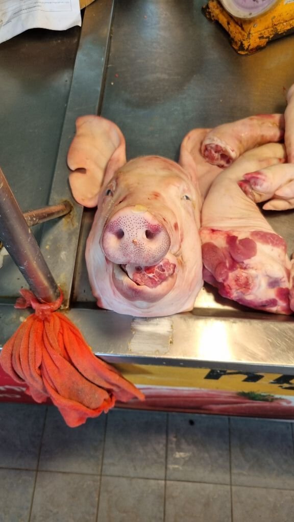 Kötthandlarn Inlagd Lördag kl 19:43 Trådstartare Dela Inlagd Lördag kl 19:43 8 timmar sedan, skrev mrsurin: Varit på marknaden i Sangkha och köpt bl.a köttben till våra hundar. Grisen ser ju nästan glad ut🤣🤣..... 1 2 Det finns ingen dag som är så dålig att den inte kan bli sämre! Livet är bara ett väntrum på döden! Det är aldrig försent att ge upp! Ett försök är det första steget till ett misslyckande! Link to comment Dela på andra sajter More sharing options...