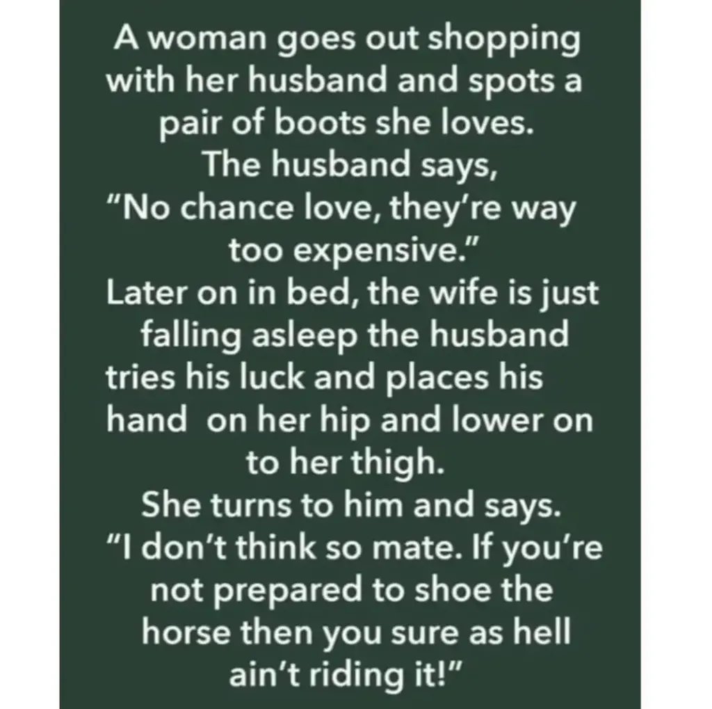 ellim63 Inlagd Augusti 7, 2024 Dela Inlagd Augusti 7, 2024 Så var det flickan som blev utbjuden på en träff för första gången. Hon fick noggranna instruktioner av sin mamma: - Först går ni till teatern, och det är okey. Sedan går ni hem till honom och han bjuder på kaffe, och det är okey. Sedan kommer han att vilja kramas med dig och det går väl inte att undvika. Men, om du låter honom ligga ovanpå dig så kommer jag att skämmas! Kvällen kom och flickan hade sin date. När hon kom hem så berättade hon att det var precis som mamma hade sagt i varenda detalj. - Utom på slutet, förstås. Jag ordnade så att jag kom ovanpå honom, så nu är det hans mamma som får skämmas! 1 10 Link to comment Dela på andra sajter More sharing options...