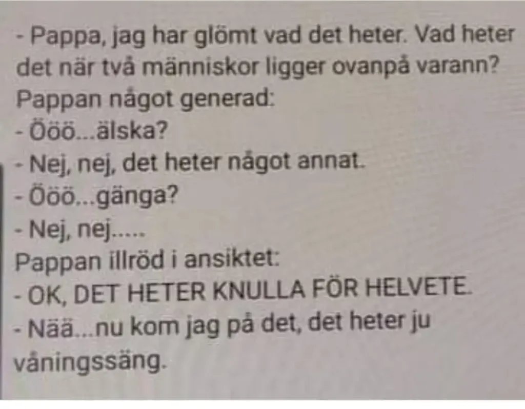 - Fy fan, pizza idag igen!  Är det pizza i matlådan i morgon också då hoppar jag ner!