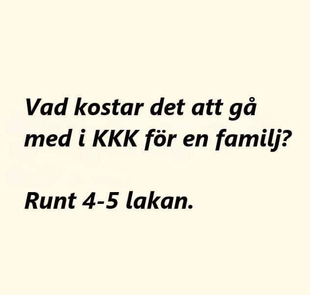 rolba Inlagd Oktober 31, 2024 Dela Inlagd Oktober 31, 2024 Lennart hade gått bort och kistan sänkts ner i graven. En av hans vänner tog upp börsen och kastade några mynt på kistlocket. -"Vad ska de vara bra för?" undrade prästen. -"Till några öl åt Lennart." -"Där Lennart kommer finns det ingen öl." försäkrade prästen. -"Då stannar inte Lennart där länge..." 2 7 1 Link to comment Dela på andra sajter More sharing options...