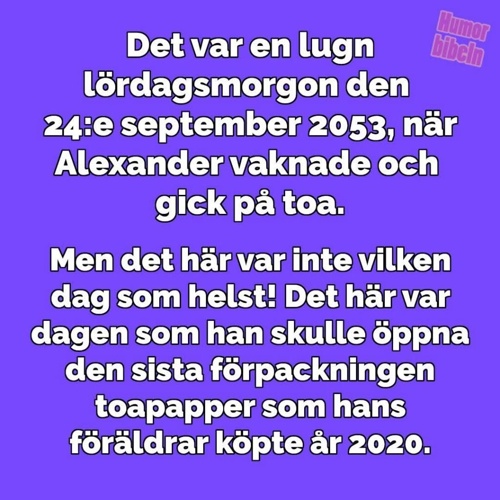 rolba Inlagd Juni 28, 2025 Dela Inlagd Juni 28, 2025 En kvinna gick till polisstationen och anmälde sin man som försvunnen. - Han är nyss fyllda trettio, nästan två meter lång, tjockt mörkt hår och mycket välbyggd, beskrev hon maken. En polis kom med invändningar: - Jag känner er man, fru Nilsson. Han är fyrtioåtta år, kortvuxen, flintskallig och överviktig. - Det vet jag väl, fräste fru Nilsson. Men vem vill ha tillbaka en sån? 6 1 Link to comment Dela på andra sajter More sharing options...